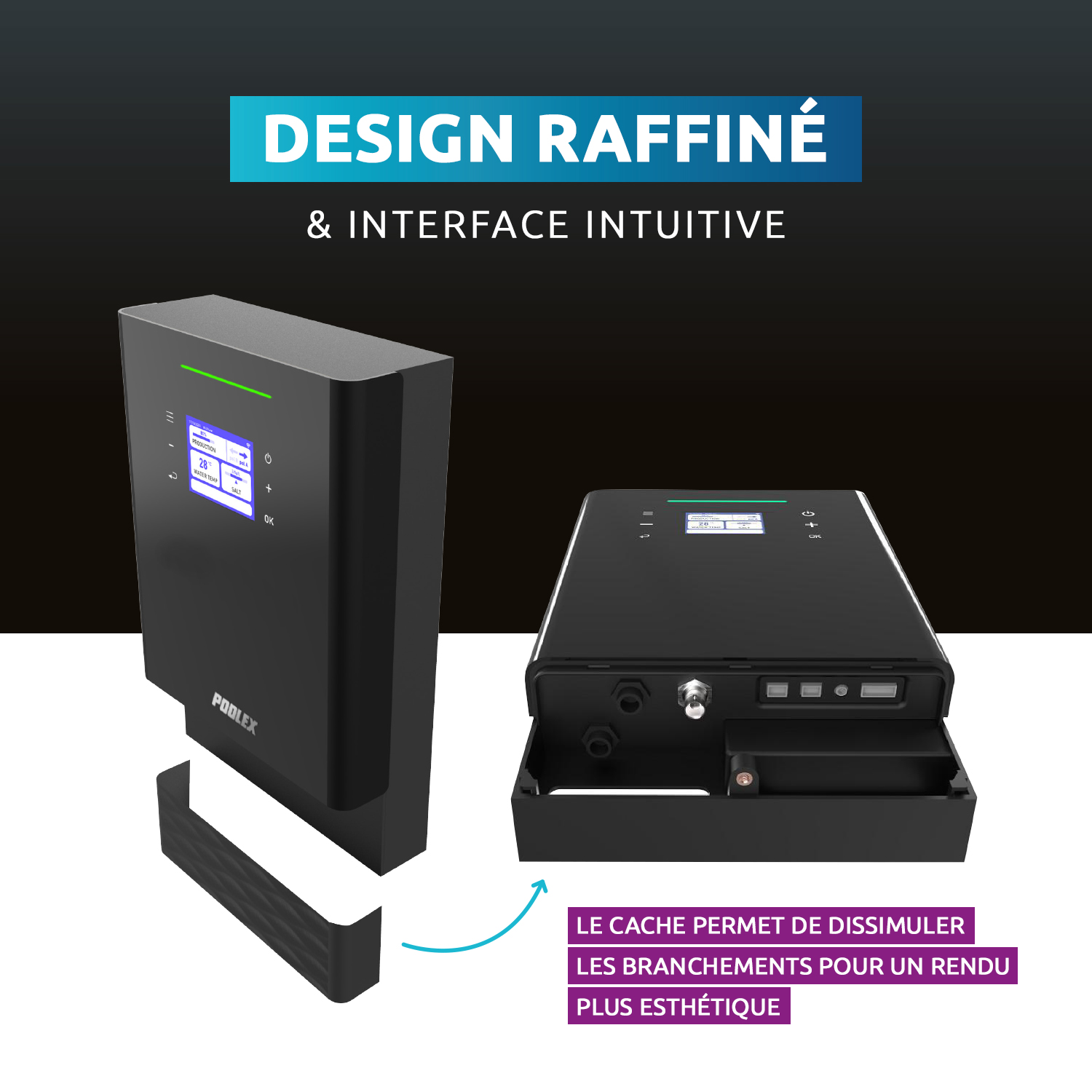 Le Modulyser de Poolex est un électrolyseur au sel modulaire nouvelle génération, conçu pour les installations résidentielles exigeantes. Grâce à sa cellule déportée et son format en deux éléments distincts, il s’adapte facilement aux locaux techniques complexes tout en offrant une excellente accessibilité pour l’entretien.
