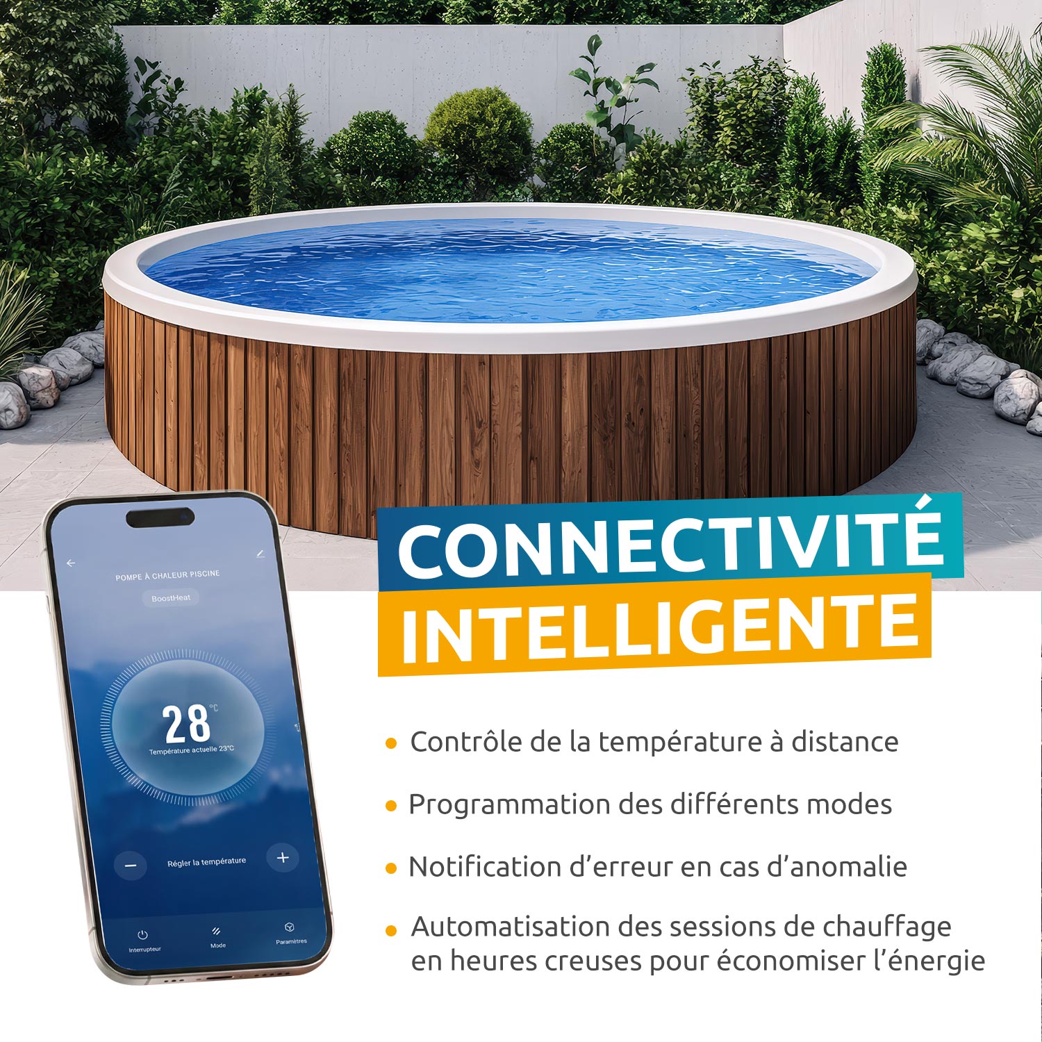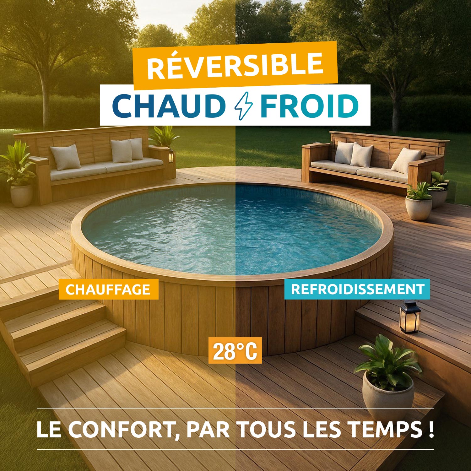 En intersaison, elle assure une montée en température efficace. En été, elle évite la surchauffe du bassin.