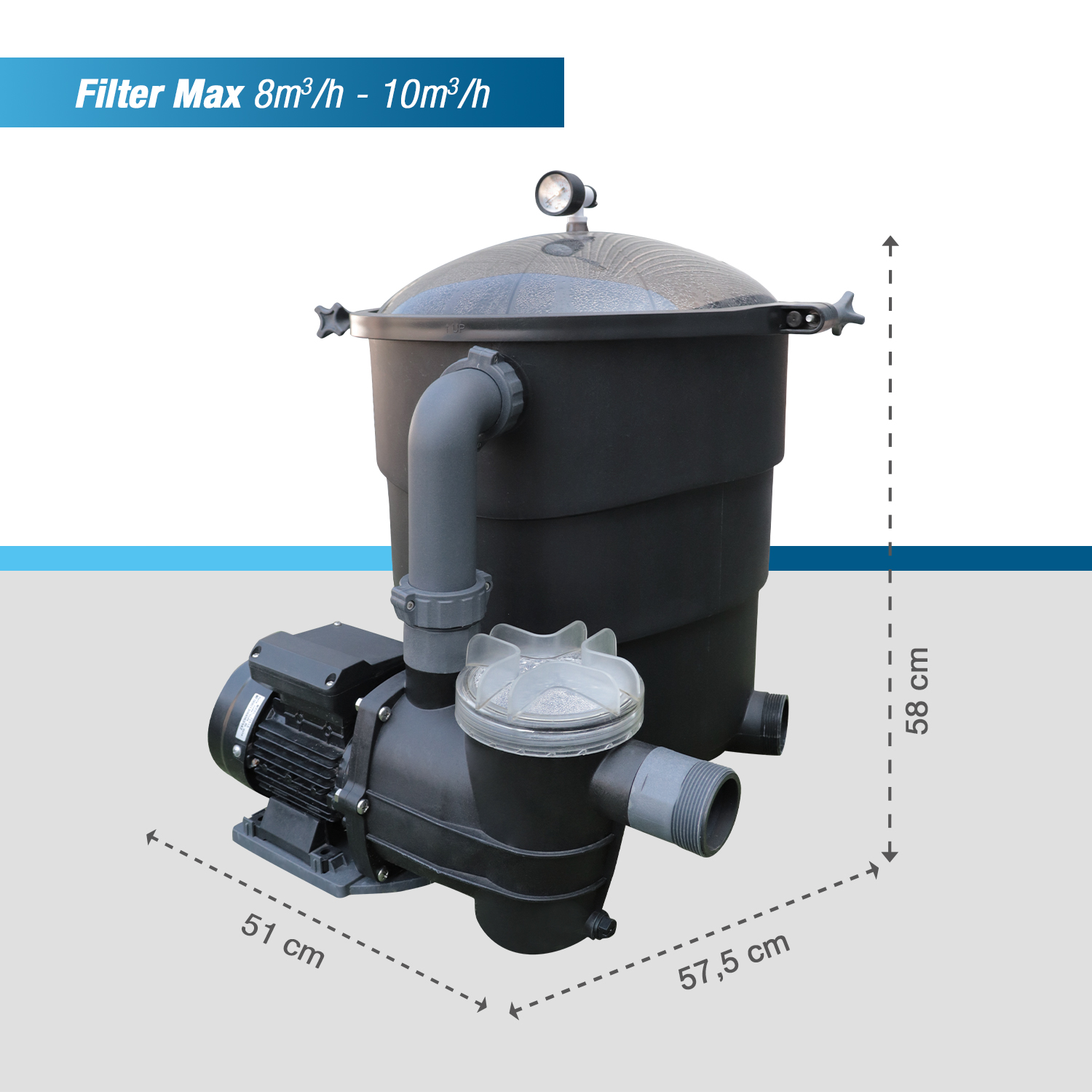 Filtration optimale jusqu'à 3 microns | Pour piscines jusqu'à 75m³